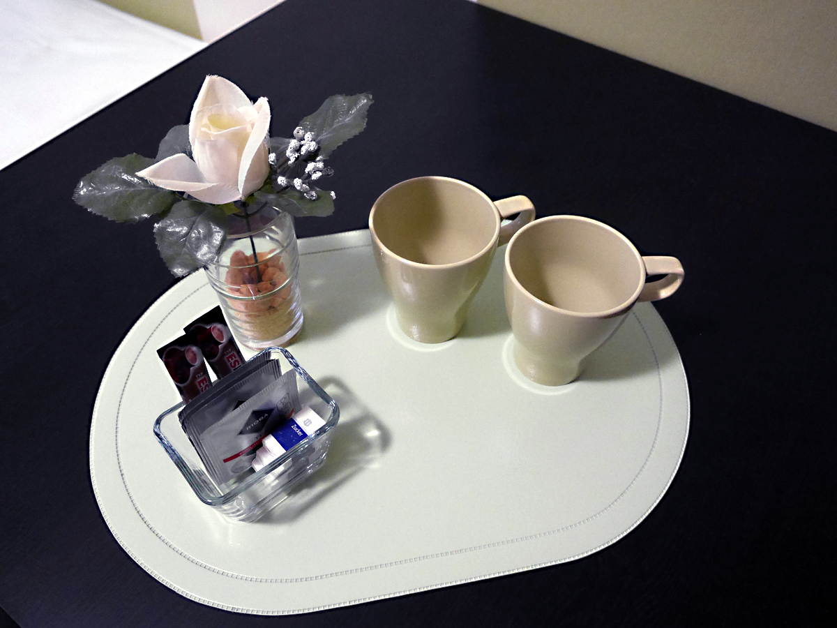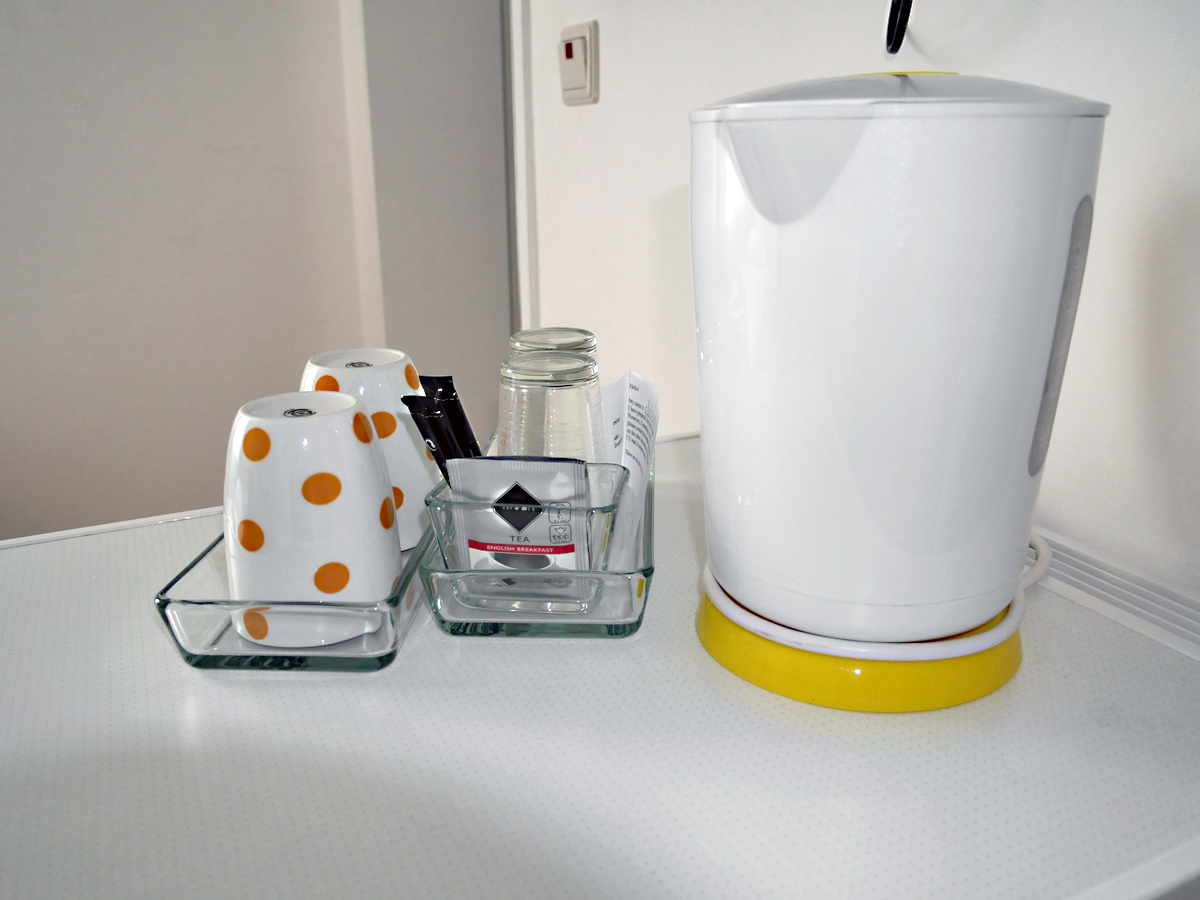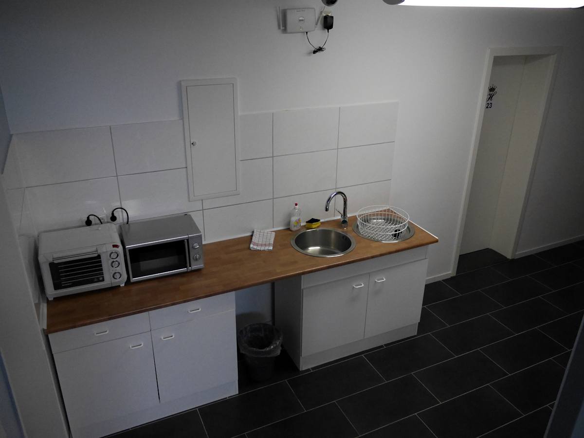 Auf jeder Etage befindet sich eine kleine Teeküche mit Wasserkocher, Kaffeemaschine und Mikrowelle.